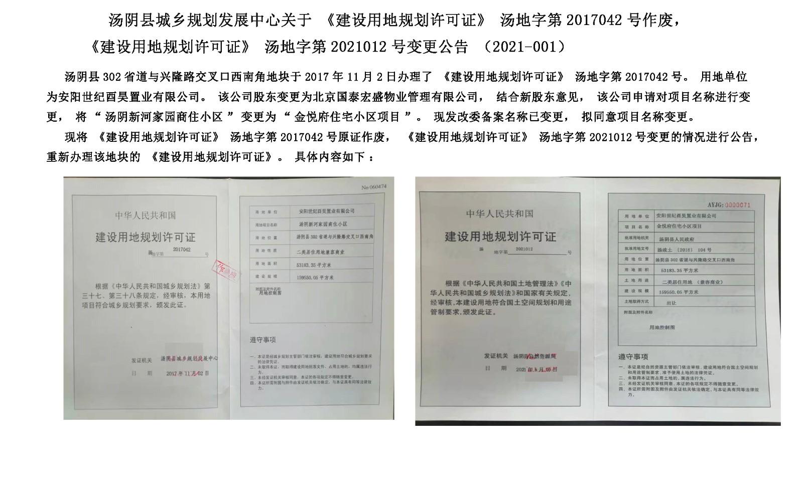 汤阴县城乡规划发展中心变更公告(2021-001)