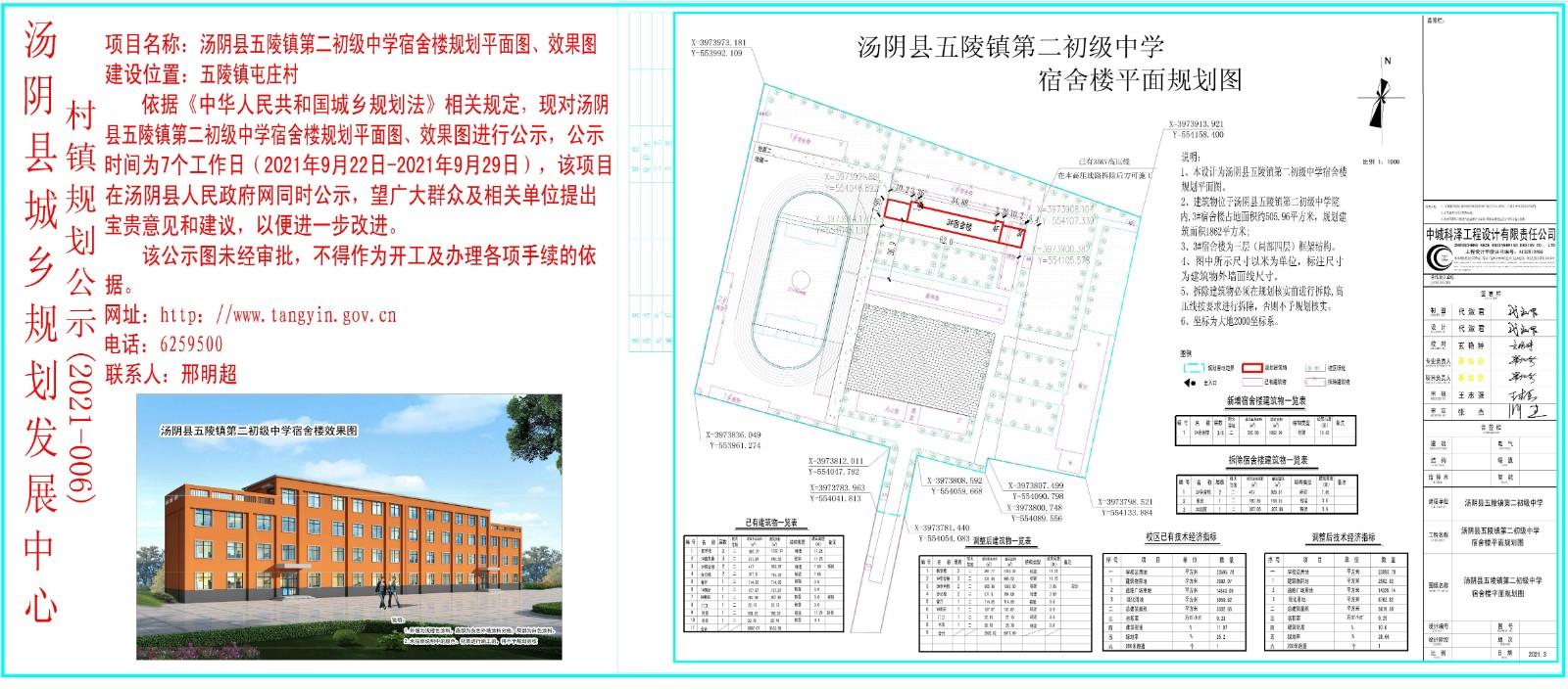 汤阴县城乡规划发展中心村镇规划公示(2021-006) —汤阴县五陵镇第二初级中学宿舍楼
