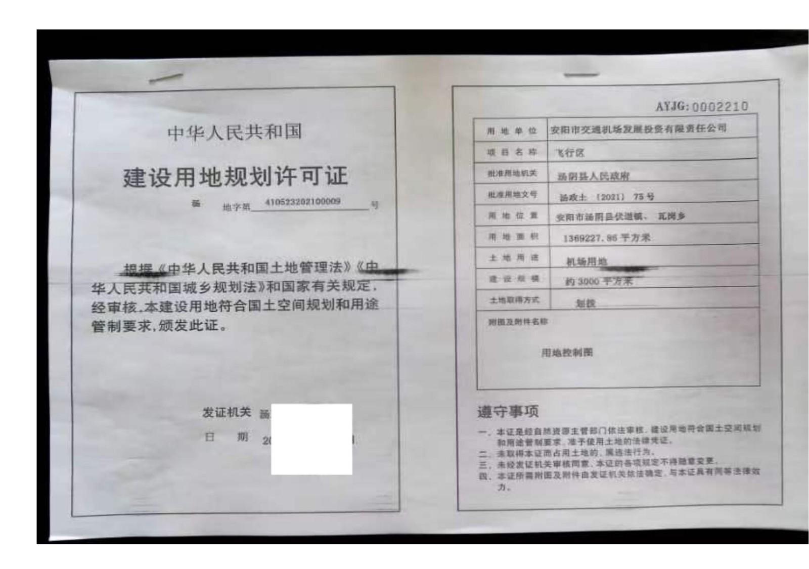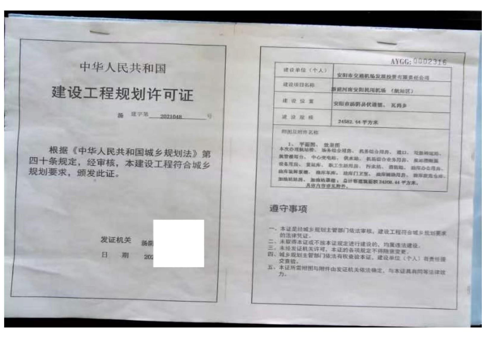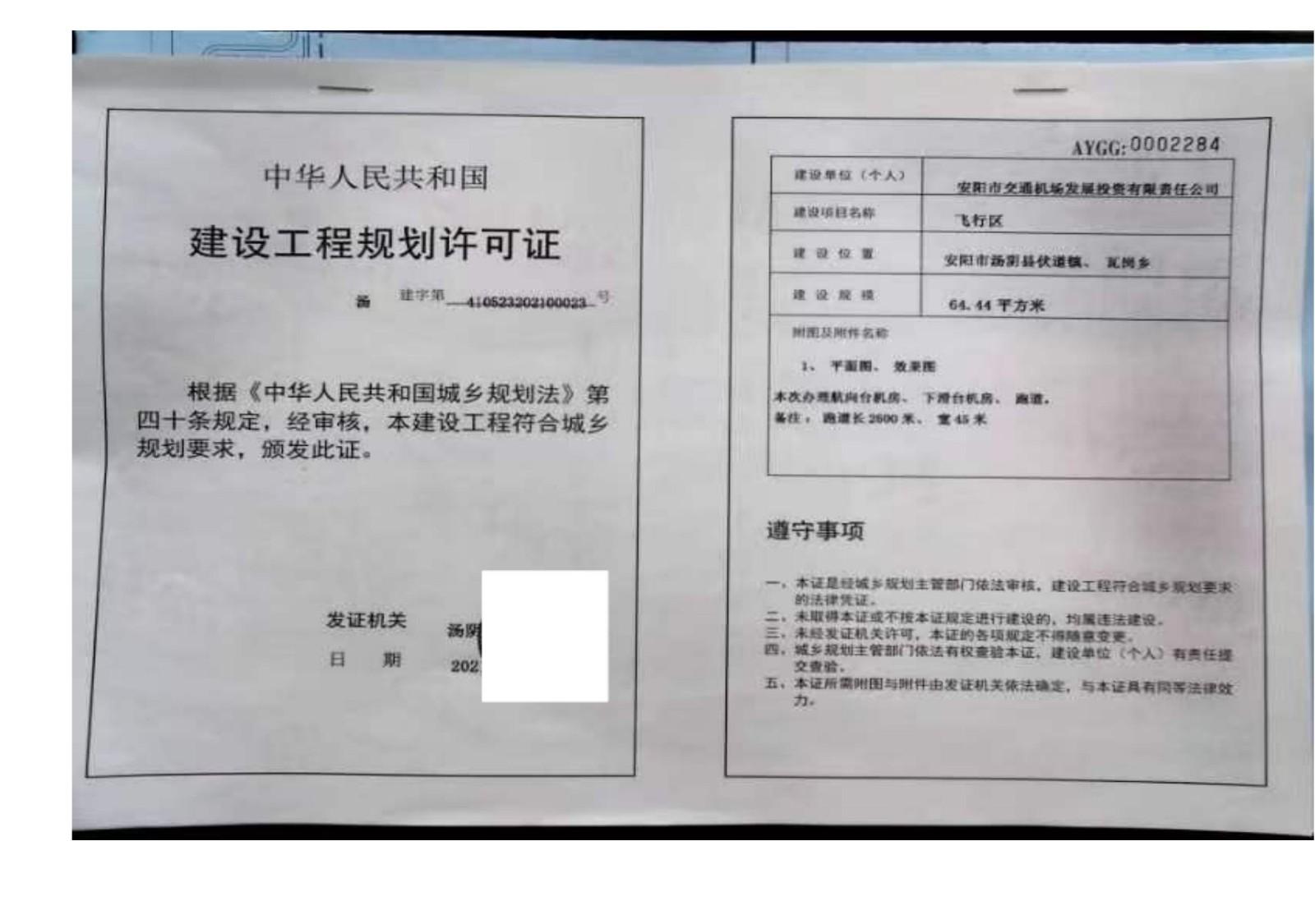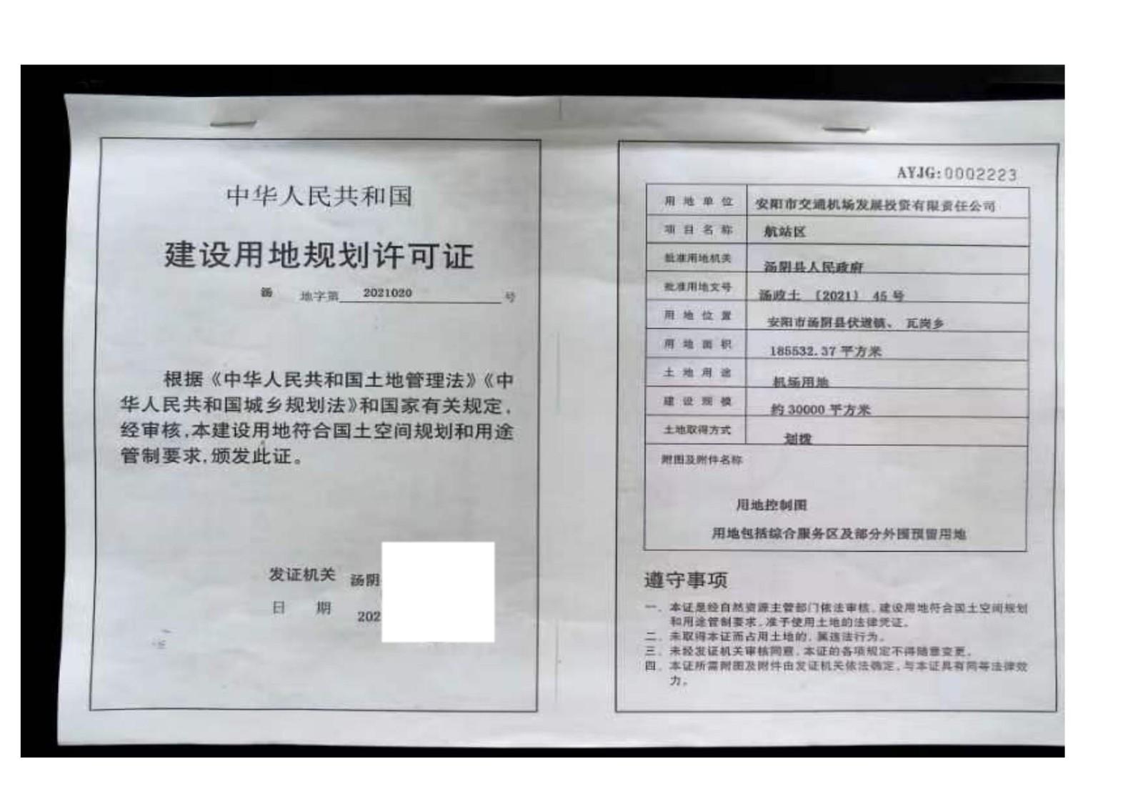 一、河南安阳豫东北机场建设工程已经《国务院中央军委关于同意新建河南安阳民用机场的批复》(国函〔2016〕181号),用地符合国家土地供应政策。