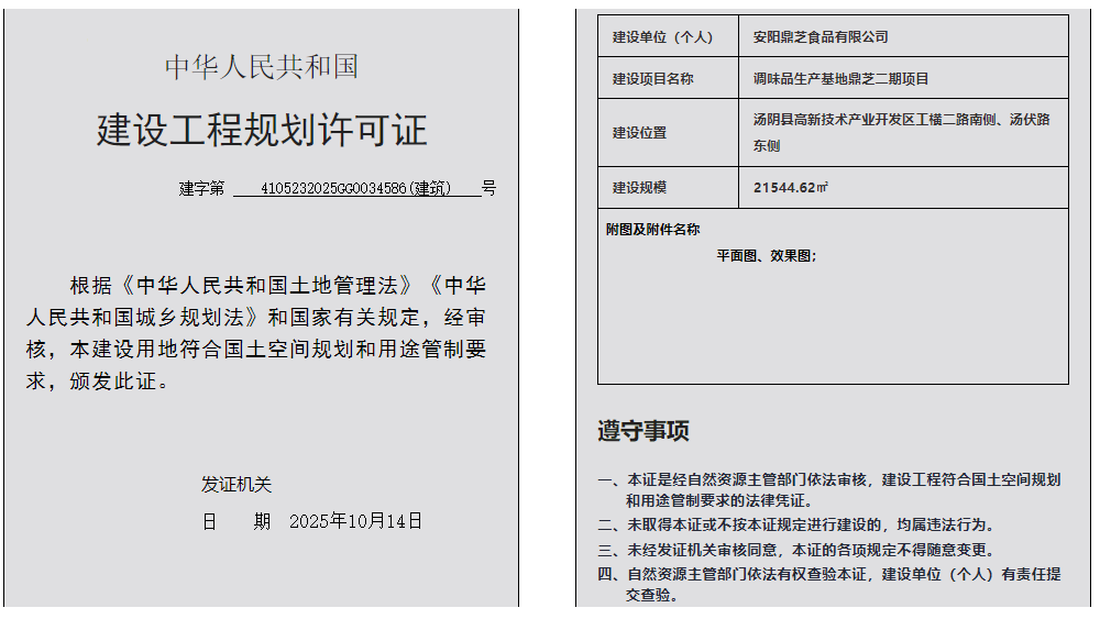 汤阴县城乡规划发展中心规划批后公示2025年4105232025GG0034586(建筑)号--调味品生产基地鼎芝二期项目