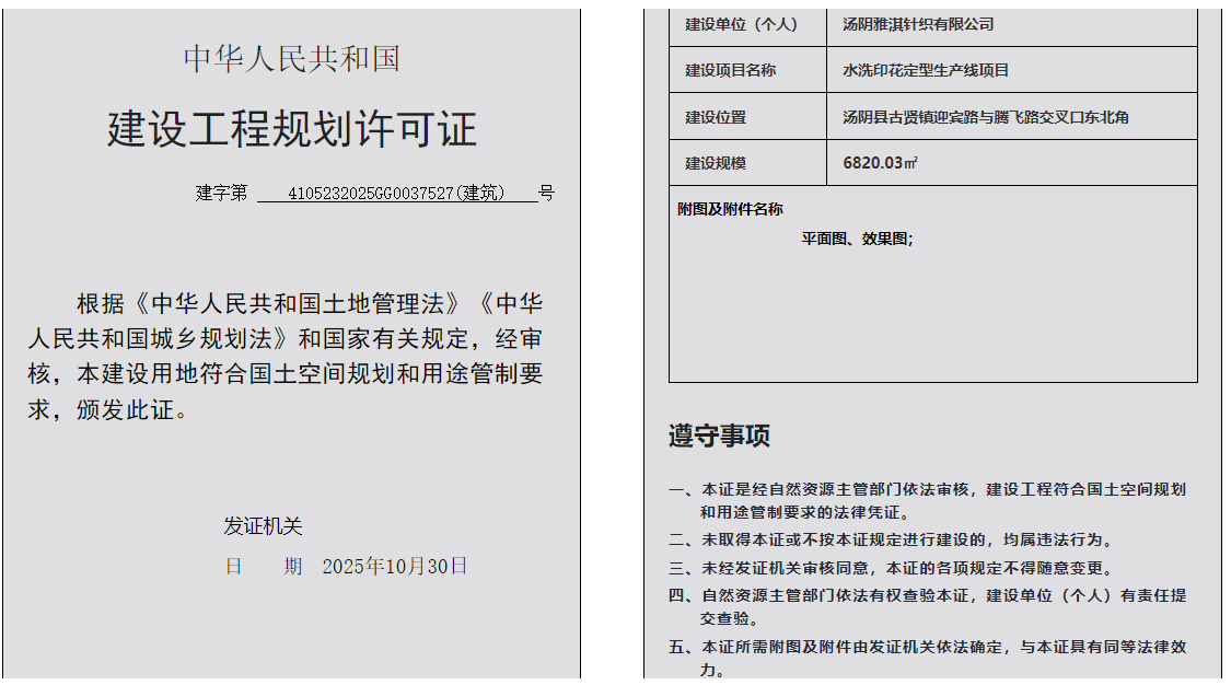 汤阴县城乡规划发展中心规划批后公告2025年4105232025GG0037527(建筑)号--水洗印花定型生产线项目