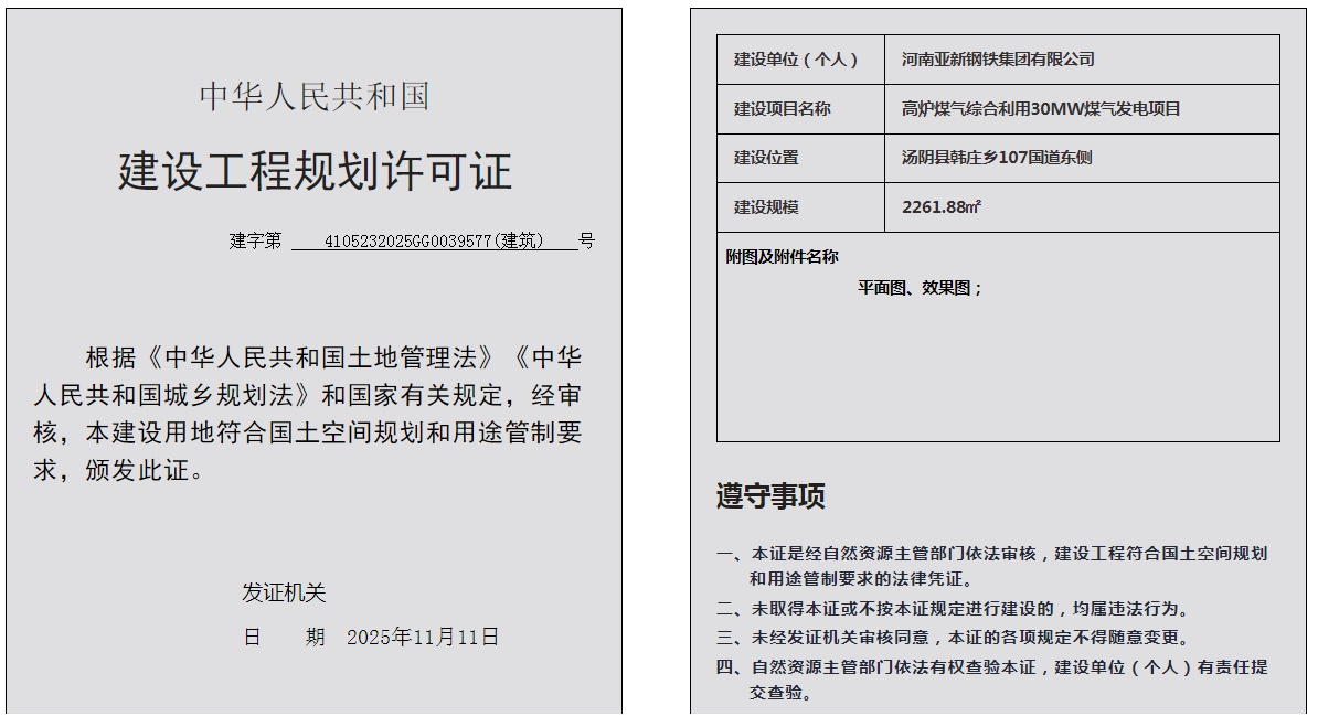 汤阴县城乡规划发展中心规划批后公告2025年4105232025GG0039577(建筑)号--高炉煤气综合利用30MW煤气发电项目