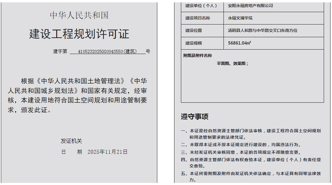 汤阴县城乡规划发展中心规划批后公告2025年4105232025GG0043550(建筑)号--永硕文博华筑