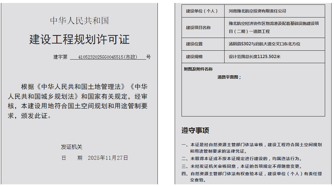 汤阴县城乡规划发展中心规划批后公告2025年4105232025GG0045515(市政)号--豫北航空经济协作区物流港及配套基础设施建设项目(二期)一道路工程
