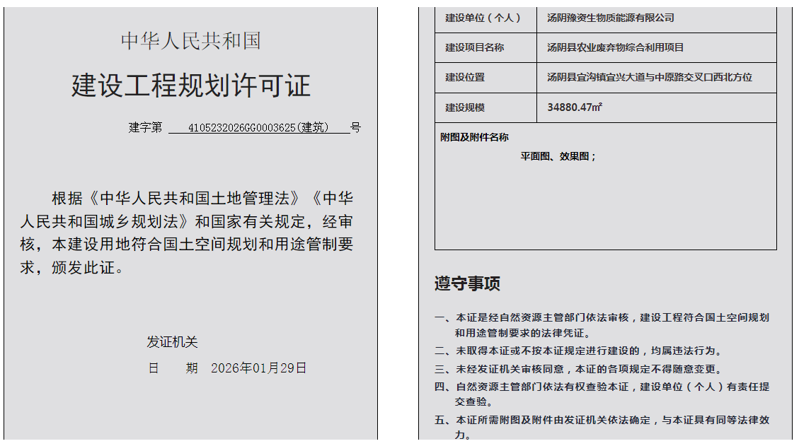 汤阴县城乡规划发展中心规划批后公告2026年4105232026GG0003625(建筑)号--汤阴县农业废弃物综合利用项目